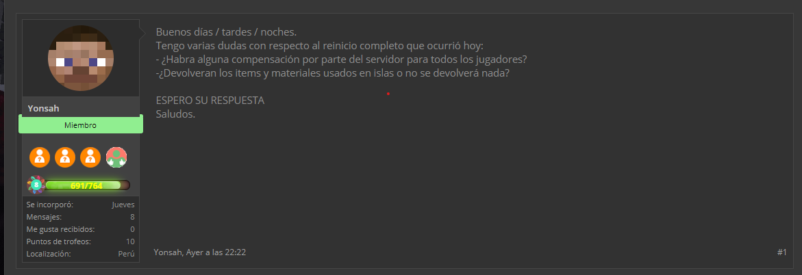 Las compras de islas y paquetes realizados en el transcurso del viernes al domingo serán respetadas y para reclamar estos tendrán que contactar en el foro con TheTecnokYT.