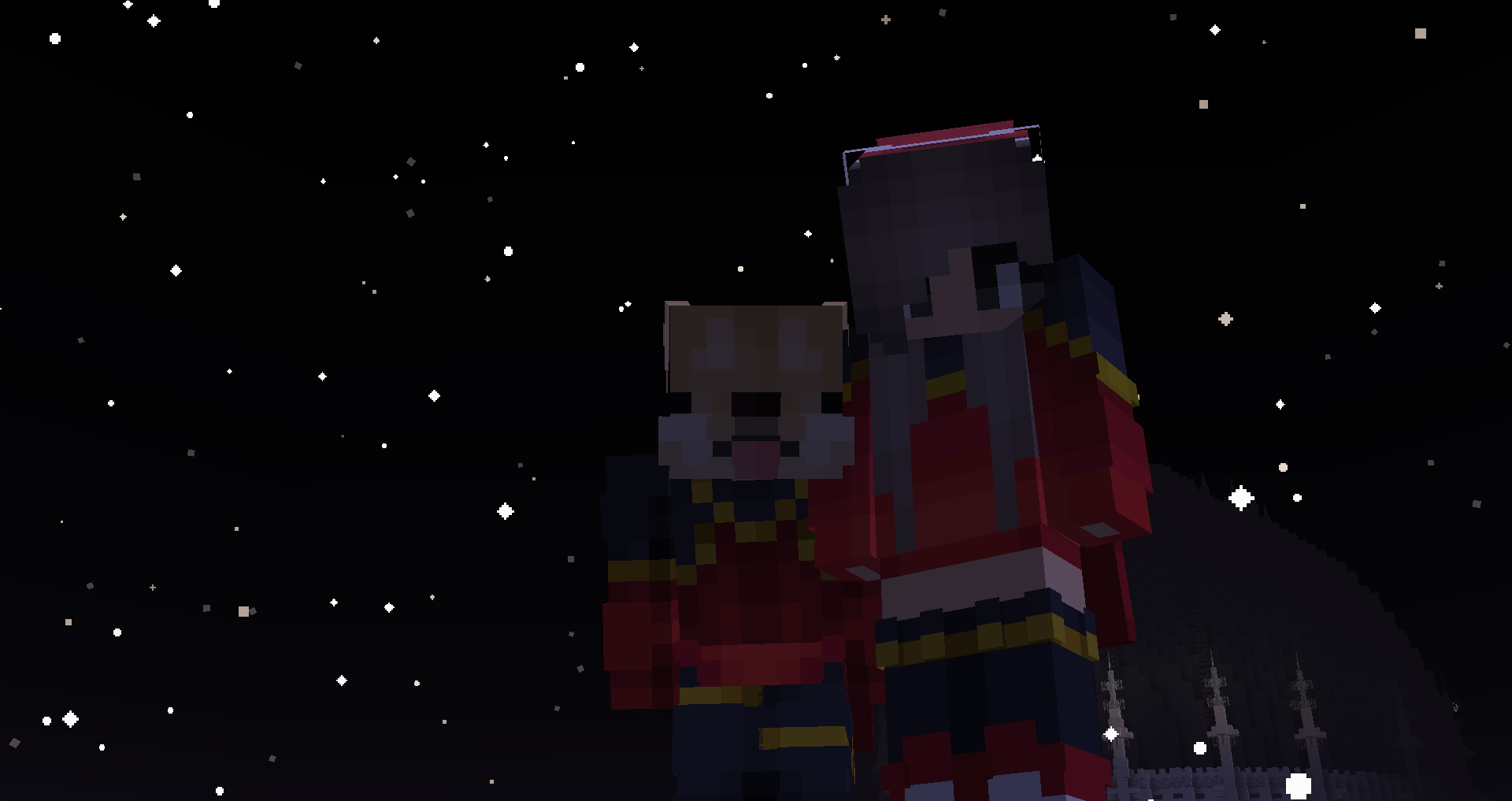 Para terminar, :snaphappy: en esta foto somos nando y yo en una parte del spawn de nuestra ciudad , la cuál significa mucho para nosotros ya que en cada bloque colocado hay dudas :bag:, enojo :muted:, sorpresas :oops: pero sobre todo RISAS :wtf: y COMPLICIDAD :shy:.